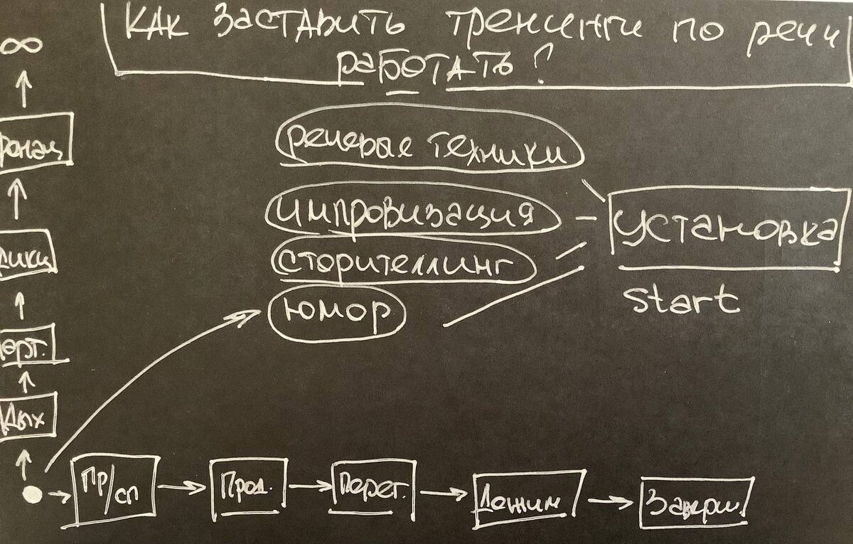 Так почему же мы снова и снова идем на тренинги по речи? 1. Развивать свою речи можно вертикально: это группы тренингов, которые отвечают на вопрос «КАК Я ГОВОРЮ?». Это качества нашего голоса, которые отчасти считаются врожденными, но тренируемыми. Хотя глобально тембральный окрас голоса останется с нами на всю жизнь. И можно лишь увеличить диапазон звучания. Тренироваться здесь нужно долго. Наш опыт занятий по речи в институте культуры в течение 5 лет говорит о том, что это крайне нудное и очень дискомфортное занятие. Ни один педагог по речи сегодня не гарантирует в пятилетней перспективе эффект от занятий в каждом конкретном случае. Хотя бывают и исключения. 2. Работать с речью можно горизонтально: здесь все, что касается ответа на вопрос «ЧТО Я ГОВОРЮ?» и этот вопрос для себя мы считаем основным в наших занятиях, потому что чаще аудитория видит нас один раз и хочет ответить на вопрос «И ЧТО?». В современной среде выступлений это горизонтальное направления в презентациях/прода
