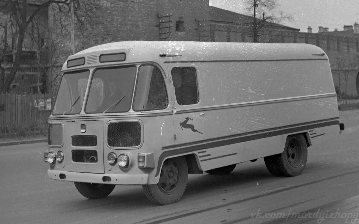Очень редкое архивное фото ранее нигде не встречавшееся современным любителям автомобильной истории. Это самый первый прототип изотермического фургона ПАЗ-3742, выпускавшегося позже с 1977 по 1989 годы. Снимок сделан в 1974 или 1975 году, точнее дату съёмки установить не представляется возможным. Документальность и достоверность снимка подтверждается только администратором группы @mordyizhopy (Фотографии автомобилей в подлиннике), но он честный человек, и мы ему верим, хотя и с некоторой долей осторожности.