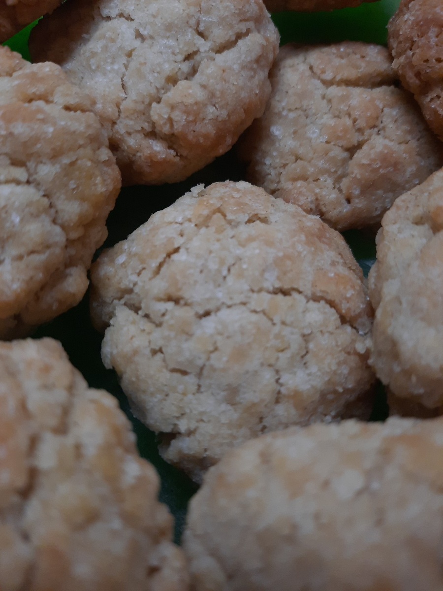 Вы сидите дома и чего-то хотите, но вам лень идти до магазина и покупать себе вкусняшку. Этот рецепт вам поможет. А главное, для него не нужно особых умений! Все смешал, и в духовку! Хрустящие снаружи и мягко-песочные внутри:) Итак, вам понадобится - 1 яйцо - 150 грамм муки - 50 грамм крахмала (или 50 г муки) - 100 мл масла (можно сливочного растопленного, или растительного) - 80 г сахара (можно больше или меньше, по вкусу) - Соль 1 ч.л - Разрыхлитель 1 ч.л Все перемешиваем. Тесто должно получиться по консистенции, как марцепан. Оно не должно прилипать, и из него можно лепить все, что угодно. Собственно, на этом все! Дальше нужно слепить шарики (примерно по 30-40 грамм, или по желанию), немного приплюснуть их, разложить аккуратно на противень, застеленный бумагой для выпечки (пергаментом), и поставить в предварительно разогретую до 180 градусов духовку, на 16 минут. Надеюсь, у вас получатся эти вкусные печеньки)) И чай попъете с удовольствием! Приятного аппетита 🙌