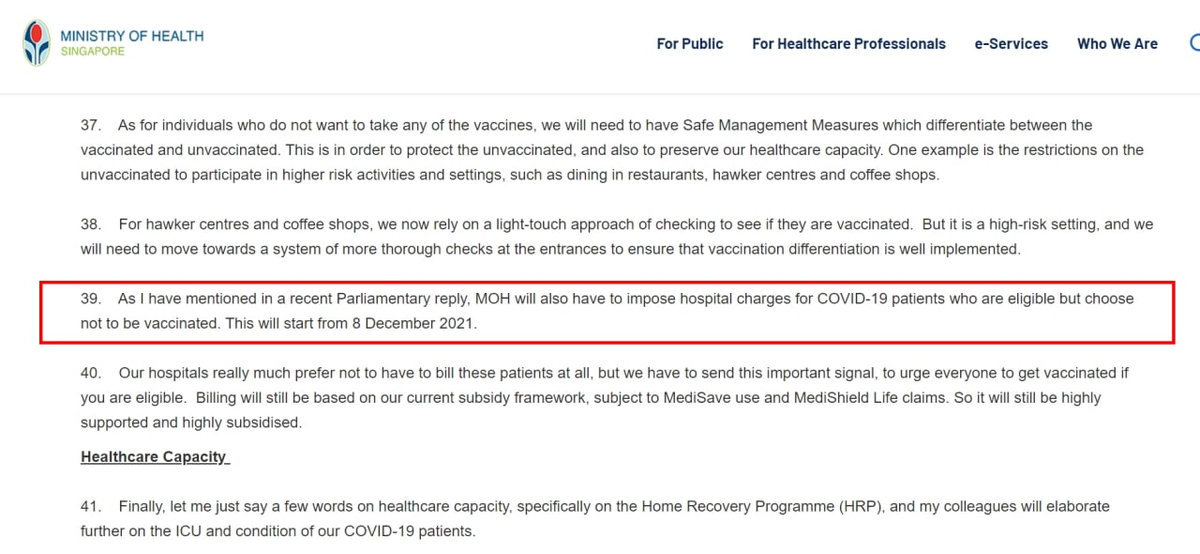 Власти Сингапура в условиях роста заболеваемости ковидом и недостаточного уровня вакцинации приняли единственно верное решение - переложить расходы на лечение от COVID-19 на самих антиваксеров. С 8 декабря, если гражданин отказался вакцинироваться без уважительных медицинских причин, больничные счета придется оплачивать самостоятельно. Адепты антипрививочного движения любят указывать на свое право не вводить ничего в организм без своего согласия. Хорошо, это право все уважают, но и нести ответственность за свое решение и его медицинские и финансовые последствия тогда должен сам гражданин. Своевременно привившиеся сознательные граждане из своих перераспределенных государством налогов такой вредительской благотворительностью заниматься не должны. Движение антипрививочников по всеми миру считается общественно опасным и вредным маргинальным явлением. Стоит ожидать, что примеру Сингапура последуют и другие мировые страны - играть с вирусными экстремистами в благотворительность к 4 волне па