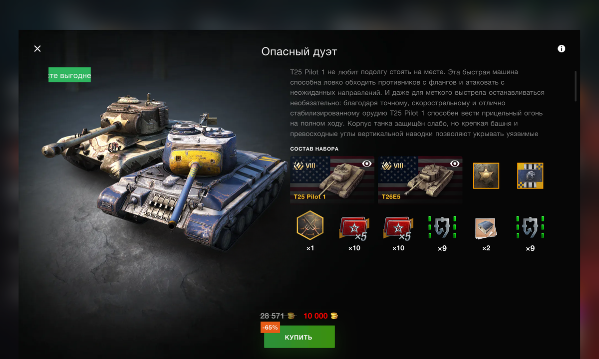 Очередное пополнение в премиум-магазине, на этот раз это американцы: Т26Е5 и Т25 Pilot 1. Танки можно приобрести вместе и по отдельности. Т25 Pilot 1 абсолютно неэффективный танк, неудивительно, почему такой ценник - 5000 голды. Не рекомендую к покупке, данный танк давно стоит у меня в ангаре и у меня нет никакого желания его выкатывать. А вот Т26Е5, напротив, вполне хорошая машина с высоким ДПМ, крепкой башней и минус 10 УВН. При игре от рельефа способен показать отличную эффективность, удивительно почему "Шерифа" не так часто увидишь в рандоме. Невысокая альфа компенсируется быстрой перезарядкой орудия, неплохой точностью, а лобовая броня спасет от многих выстрелов. Однозначно рекомендую к покупке, думаю, обладали "Шерифа", оценят этот танк и их статистика подрастет. Подписывайтесь на канал, чтобы не пропускать интересные новости по WoT Blitz.