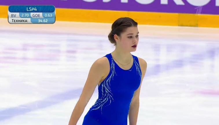 Не ясно, как у неё с ней 12 баллов разницы! Новая грибница ЦСКовская выросла что ли? Вроде 3 аксель и двойной не столько разницы имеют-то. А дорожки у обеих на 3 уровень. А, за ультра-си 2 балла добавляют, но всё равно…