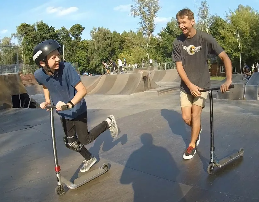 Катание на трюковом самокате. Показываю