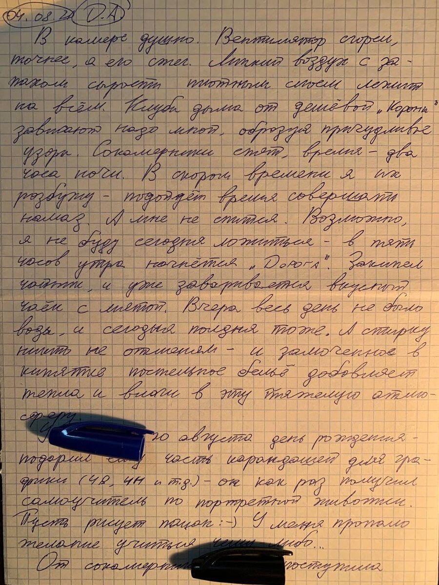 Привет! Во избежания многих вопросов и недопонимания, а также: о чем этот блог, кто мы такие (Арестант и Лисичка), навигация по каналу ЗДЕСЬ. Мы обращаем внимание, что любая информация в блоге носит повествовательный характер, и ни в коем случае НЕ пропагандирует нездоровый образ жизни, а наоборот - имеет цель предупредить читателей о проблемах с зависимостями и законом. Читать рукопись с фото не нужно - текст напечатан ниже. 04.08.2021 В камере душно. Вентилятор сгорел, точнее, я его сжег. Липкий воздух с запахом сигарет плотным слоем лежит на всем. Клубы дыма от дешевой «Короны» зависают надо мной, образуя причудливые узоры. Сокамерники снят, время - два часа ночи. В скором времени я их разбужу - подойдет время совершать намаз. А мне не спится. Возможно, я не буду сегодня ложиться - в пять часов утра начнется «Дорога». Закипел чайник, и уже заваривается вкусный чаек с мятой. Вчера весь день не было воды, и сегодня пол дня - тоже. А стирку никто не отменял - и замоченное в кипятке пос