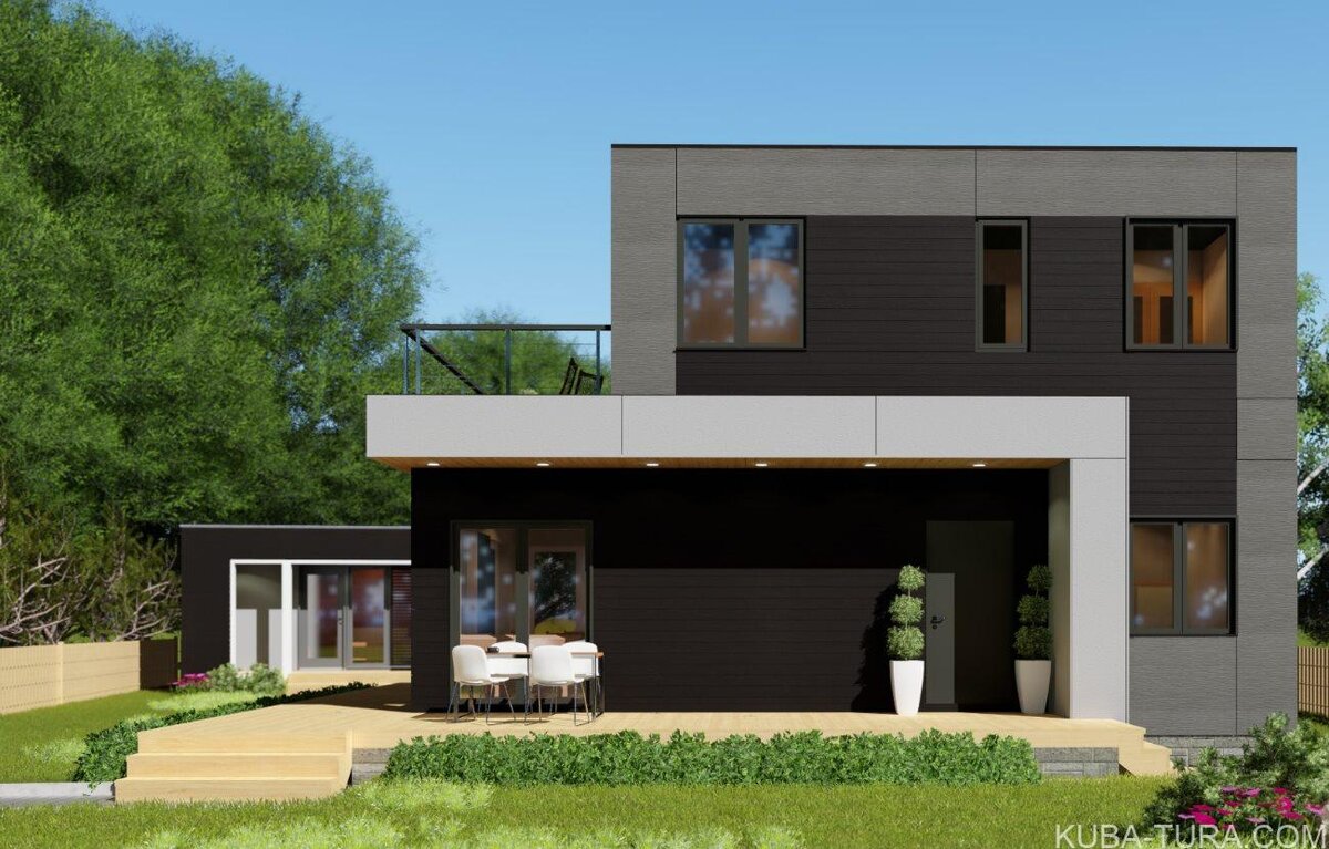 Началось все с того, как мы увидели этот проект дома и влюбились! Плоская крыша была ключевой деталью, так как муж строит дом практически в одиночку, а плоская крыша кроется в разы легче. И вот у нас уже стоят 2 этажа с плитами, укрытыми рубероидом. Сезон закончен. А я хочу скорее переехать в дом и думаю как ускорить этот процесс в следующем году. Это можно сделать, если отказаться от монтажа этого белого козырька. Он несет практически только декоративную функцию. Но без него дом существенно "пострашнеет", но зато мы сэкономим деньги и средства. А вот и сам дом. Обшивать будем скорее всего фиброцементным сайдингом. Он очень круто смотрится, намного лучше металлический. Есть более дешевый аналог Кедрала: Фибратек. Дешевле почти в 3 раза. Но только 2 цвета, доски потом можно покрасить. Мы рассматриваем его. Сначала обшить дом, а потом сделать козырек нельзя, это будет двойная работа, а часть придется ломать. Только все вместе. Не обшивать тоже нельзя. Это первая задача на следующий сез