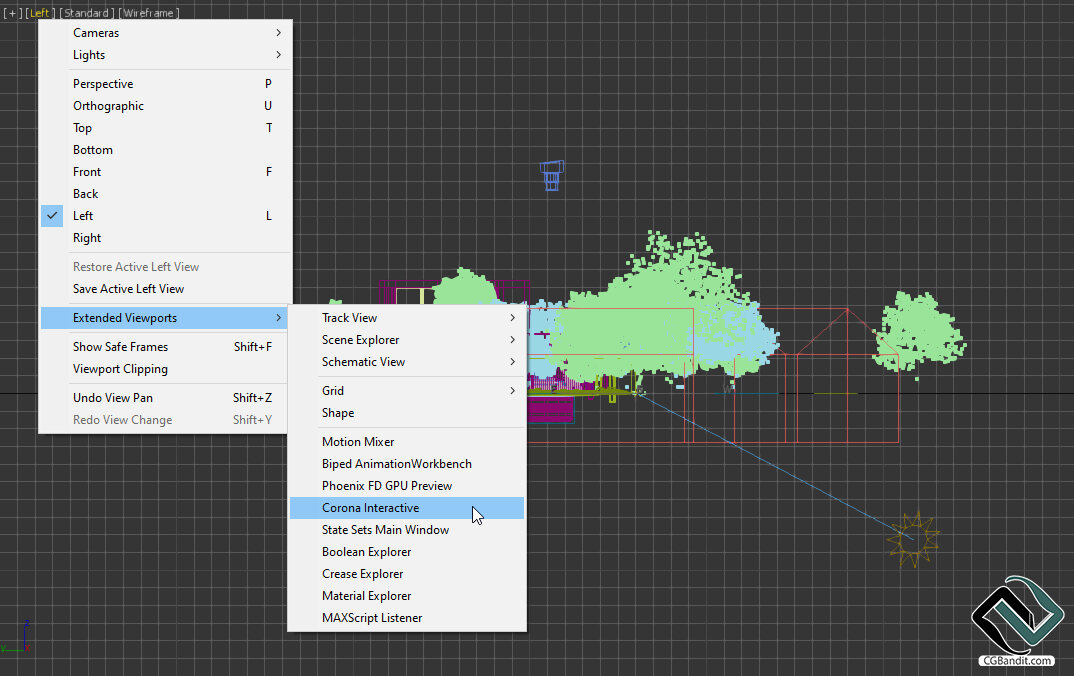 Чтобы включить его, щелкните правой кнопкой мыши на названии выбранного вами видового экрана (например, [top], [left] или [perspective]) и выберите Extended Viewports > Corona Interactive: