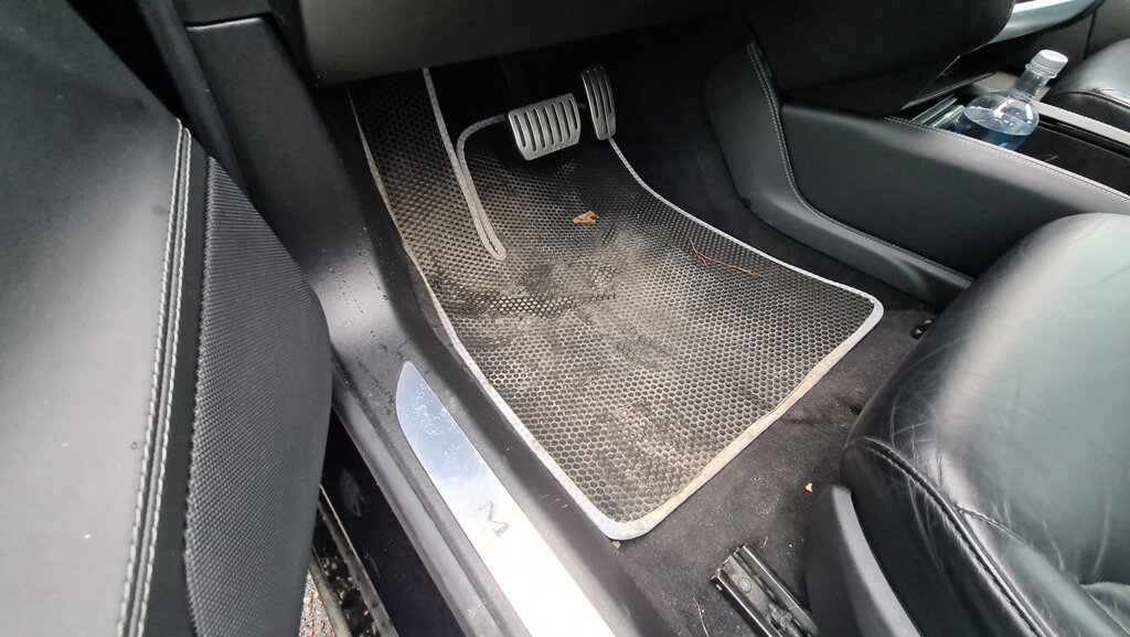 Вообще, еще со времен BMW ничто человеческое мне не чуждо, и дооснащения - в том числе. Все время хочется сделать машинку комфортнее, универсальнее и эстетичнее, а потому дооснащения и всякие приколюхи - нечто само собой разумеющееся, чем я рано или поздно должен был заняться. Ништяков, на самом деле, больше, чем покажу в заметке, однако часть из них еще едет, а потому расскажу о них позже, по ходу. Первое, что мне обломилось еще до того момента, пока машина получила новое место жительства - вот такие модные EVA-коврики. Структура в виде сот отлично держит песок и грязь и не дает растаскиваться по всему салону, а потому внутри всегда чистота и порядок. Чистить их проще простого - просто взять и вытряхнуть. Сей гаджет мне подарила на день рождения моя пассия. Второй ништячок - штука, о которой мечтают все владельцы дорестовых Model S с их знаменитым корытом. Признаюсь, в какой то момент корыто мне даже начало нравиться, однако отказаться от такой вот консольки я не смог. Приехала она с