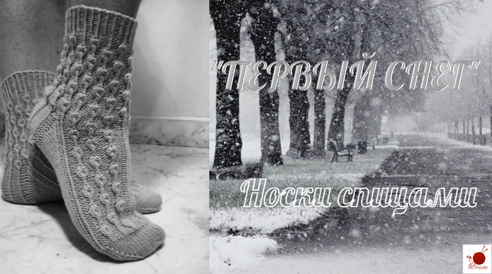 На эти носочки меня вдохновило видео блогера из Германии Maria Knit ( https://youtu.be/b4vi7BKwbuM ), где она показывает узор "Бутоны". И, связанный другой пряжей и спицами другого номера, этот узор действительно напоминает бутоны. В моем случае - это крупные хлопья снега, внезапно повалившего на стылую землю, чтобы укрыть, укутать, украсить. Спрятать серую неприглядность поздней осени под белым покровом...