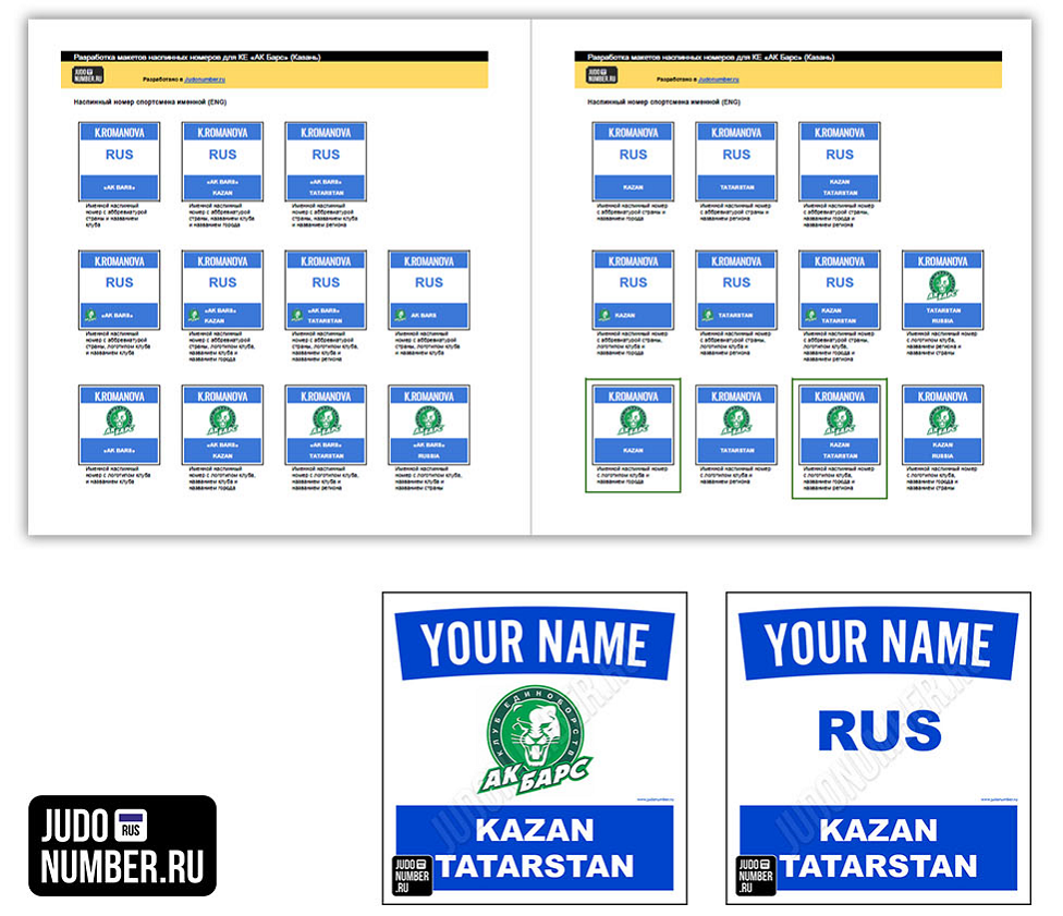 В первой строке указали название города Казань, во второй название республики Татарстан. Теперь на спинах дзюдоистов КЕ «АК Барс» наспинные номера изготовленные с соблюдением международных правил маркировки. Наспинные номера КЕ «АК Барс», добавили на сайт Judonumber, теперь каждый новый спортсмен клуба может самостоятельно заказать номер. Если вы тренер, представитель клуб