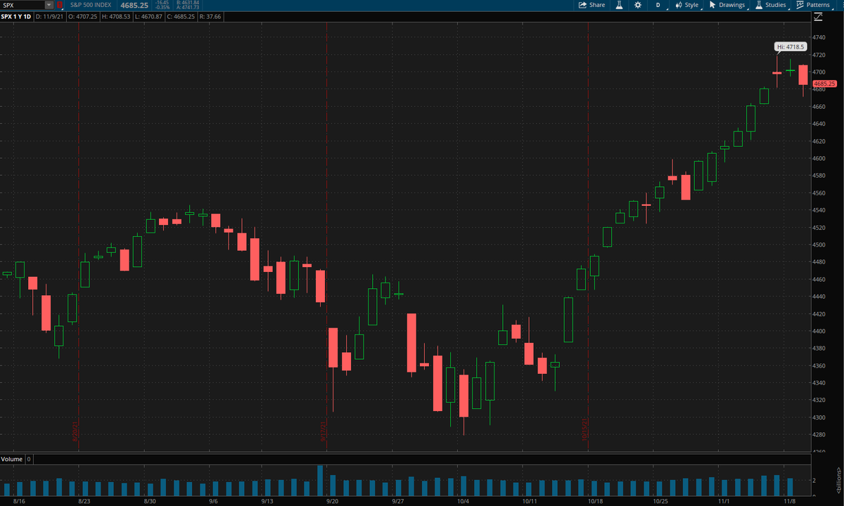 В понедельник $SPX сделал то, чего не делал более 50 лет: индекс закрылся выше в 17-й раз за 19 торговых сессий. Это включает в себя 7-ми дневную победную серию, за которой следует 8-ми дневная победная серия, последняя из которых была прервана вчера. В последний раз индекс S&P 500 поднимался с 17 до 19 в 1971г. Также на вчерашней сессии и Nasdaq прервал 11-дневную победную серию. Многие из этих последних дней были довольно скучными. 12 из последних 17 дневных приростов составили менее 0,5%, но это типично для ралли. Многие из лучших времён для инвесторов в акции-это довольно скучные рынки. Джордж Сорос однажды сказал: “Если инвестирование увлекательно, если вы развлекаетесь, вы, вероятно, не зарабатываете никаких денег”. Похоже, это правда. Есть такая статистика, о которой я как-то уже подробно говорил в своём подкасте: если взять все дни, когда индекс S&P 500 двигался более чем на 1,14% за день, вверх или вниз, то совокупная доходность равняется нулю. Они полностью уравновешивают дру