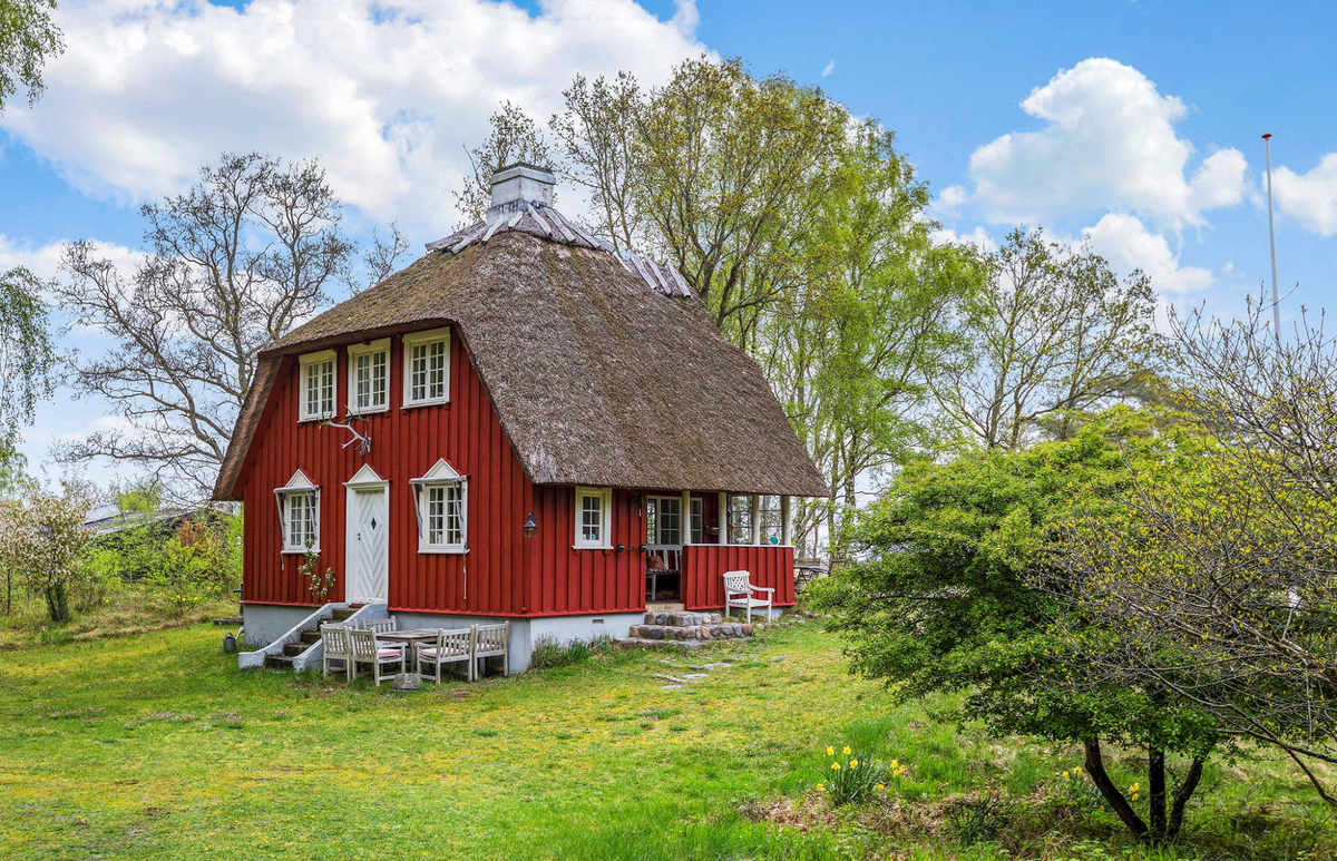 У старых домов есть свои преимущества: уникальная архитектура и дизайн, проверенная временем конструкция, своя особая история, связанная с предыдущими владельцами, ну и, конечно, приведения... Куда же без них? В старом коттедже, построенном еще в 1918 году в датском местечке Рервиг, наверняка, тоже есть свои привидения. Этот дом с традиционным для скандинавской страны красным фасадом стоит на участке в окружении вересковой пустоши и деревьев. Никто не догадывается об истинном возрасте постройки, ведь экстерьер ее вполне обычен — и сегодня в датских деревушках строят точно такие же дома. Правда, современные жилища имеют еще навесы для автомобиля, джакузи на террасе и солнечные батареи на крыше. Двухэтажный коттедж стоит на высоком бетонном фундаменте и увенчан соломенной крышей. Традиционным украшением кирпично-красного фасада служат рамы окон, окрашенные белоснежной краской. Несмотря на преклонный возраст, дом отлично сохранился, и благодаря предприимчивости владельцев, обрел все самое