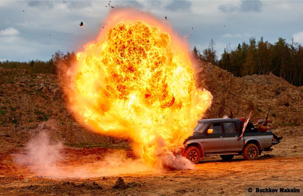 Залп «Шмелей» слился в один единый звук. Первый пикап перевернуло и протащило по дороге. Последний подбросило и огонь охватил автомобиль… Автобус лопнул изнутри. Огненный шар поглотил его полностью. Кузов «Шишиги» вспыхнул и тут же раздался оглушительный взрыв, кабину сорвало и она улетела в сторону. Идущий сзади «МАЗ» обдало пламенем и он загорелся…