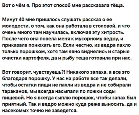 Запах чистоты тепреь не покидает мой дом. Кладу в мусорку ложку стирального порошка и ВУАЛЯ. Рассказываю подробно