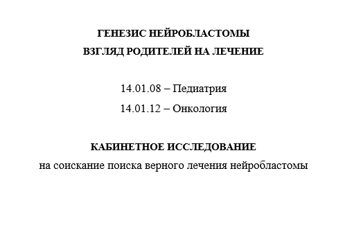 В заключении добавлю, что основная цель данной статьи состоит в воплощении теоретических данных в терапию нейробластомы, добавив еще 5 % в выживаемость пациентов.