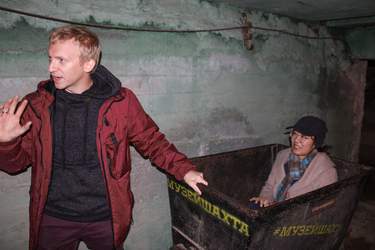 А потом я сама попала на экскурсию Анатолия Каптура. Хотя я бы назвала это иммерсивным театром: стучали молотки в наших руках, исследовались редкие минералы; взрослые и дети хохотали над шутками экскурсовода. Потом уже под землей, в шахте, Анатолий водил нас по лабиринтам. Гостье из Китая выпало погонять по черному тоннелю в шахтерской вагонетке (см. заглавное фото). Экскурсия закончилась аплодисментами, причем в них мне слышалась не только благодарность, но и облегчение, что выбрались наконец-то на свободу, к свету и чистому воздуху.