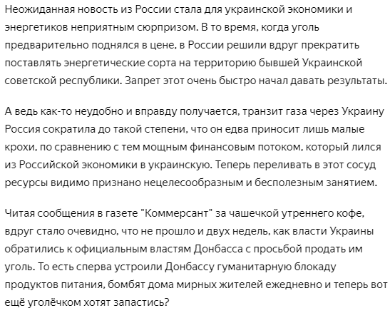 Отказ России поставлять уголь на Украину уже начал давать результаты