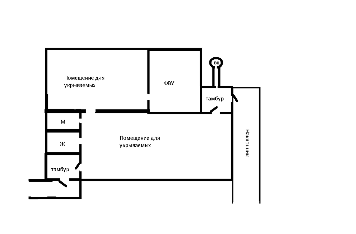 Всем снова здраcьте) Сегодня речь пойдет про одно довольно мелкое убежище одной больницы. Схема Как всегда, в убежище два входа, один наклонный, другой просто прямой Заходим через наклонник (фотки наклонника увы нету, потому что я забыл его сфотать) Спуск упирается в тамбур шлюз и бла-бла-бла, ничего особенного Заходим в помещение для укрываемых. Кстати само убежище предназначено человек на 100-150. В убежище располагались санузлы. Мужской и Женский Также в данном убежище была ФВУ Ну и второй выход Ну и на этом все, всем спасибо за прочтение данной статьи!)