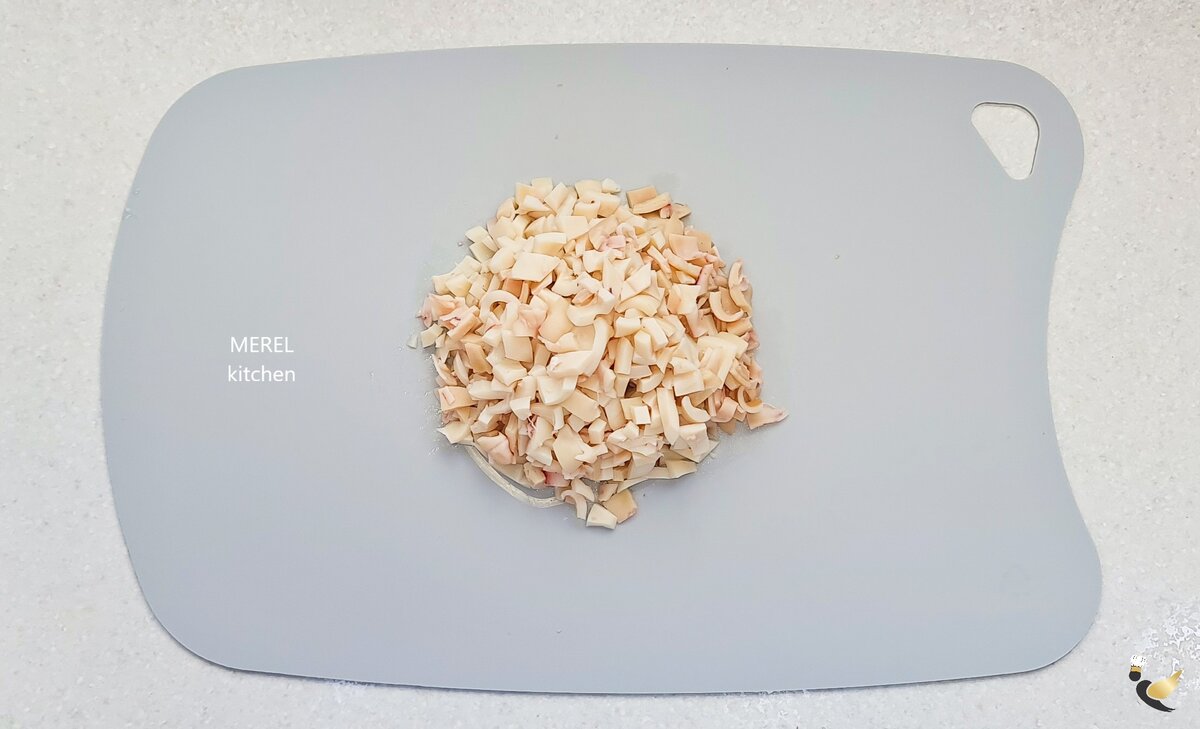 Салат для меня был просто находкой, гармоничное сочетание ингредиентов, яркий вкус, я такой салат раньше никогда не пробовала, он мне очень понравился! Я просто обожаю салаты с кальмарами, это моя маленькая слабость, готовлю их просто на ужин, ну и на праздничный сто всегда делаю. А тут недавно была в гостях у сестры, было застолье и она приготовила очень вкусный салат с кальмарами "Нептун". Для меня это было в новинку, салат очень интересный и стоит того, чтобы его приготовить. Еще мне нравится салат "Морской Бриз" с кальмарами, который готовит мой муж, если вам интересно как его приготовить, то смотрите наш видео рецепт 👇 Для приготовления салата "Нептун" понадобится одна тушка кальмара. Кальмара обязательно чищу. Самое главное в приготовлении кальмара, это не переварить его, иначе он будет "резиновым". Я опускаю кальмара в кипящую подсоленную воду на 1-2 минуты и достаю, этого достаточно чтобы кальмар был готов и остался вкусным и нежным. Следом беру вареный картофель. Все овощи