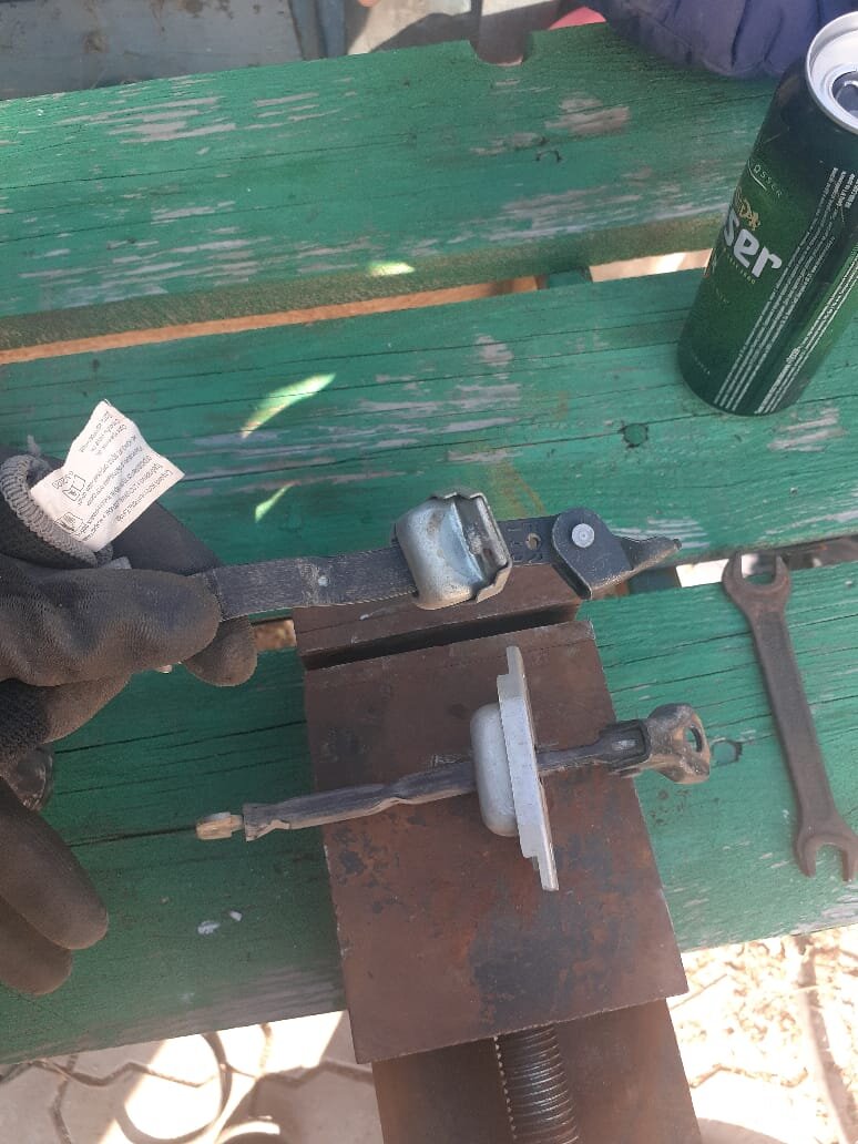 Сразу скажу что делал это на своих двух тойотах и все работает уже не один год. Не знаю как у других производителей, но у Тойоты эти ограничители после 2000 года стали пластиковые и стираются к 120 -150 тыс километров. Сами они стоят недорого 700-1000 рублей. Но их обычно 4, а это уже нормальные расходы. В общем к делу. Итаг снимаем ограничители. Нужно снять дверную карту и открутить три болта головкой на 10. Ничего сложного. Зажимаем "пациента" в тиски. Нужно высверлить две сварочные точки, я делал это сверлом на 6. Разбирается потом влегкую. Достаем сами скользуны. Как видим они уже стерлись и совсем не держат дверь. Ходят свободно. Зажимаем центральную пластиковую часть в тски и сверлим отверстие диаметром 2,5 мм. Далее берем клепку. Или саморез, главное чтоб по диаметру подходил. Отрезаем сколько нужно. Вставляем в ограничитель и собираем все назад. Я их даже не варил, так как они прижмутся болтами. Ставим на авто. Вуаля все работает отлично. Главное не забудьте смазать. Всем