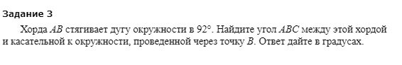 Приветствую Вас! Хотелось бы сегодня поговорить об одной полезной малоизвестной теореме геометрии, которая решает многие задачи, избегая длительных решений. Она касается окружностей и дуг. Звучит она так: Угол между хордой и касательной равен половине градусной мере дуги, заключенной между ними. К примеру, такая задача: Имеем такой чертеж: Здесь, конечно, можно сделать дополнительные построения: провести касательную к точке А, соединить А и В с центром окружности. Далее воспользоваться парой теорем и прийти к тому же, о чем гласит теорема, указанная выше (собственно это и будет доказательство данного), т.е искомый угол будет равен половине дуги, между хордой и касательной - 46 градусов. Например, такая задача, которая показывает чертеж, описанный выше: Вот здесь как раз можно долго и нудно решать, пользуясь тем, что касательная перпендикулярна радиусу, касательные, выпущенные из одной точки равны итд. Но, если воспользоваться данной теоремой, то понимаем, что дуга АВ - 64 градуса, след