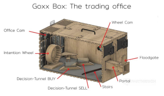 В этом посте мы расскажем о нестандартном заработке на обычном хомяке, который случайным образом выбирает криптовалюту и таким же образом принимает решения покупать или продавать этот актив. Не все на рынке криптовалют зарабатывают, понятное дело, много есть тех, кто теряет весь свой депозит. На фоне этого бурного роста криптовалюты, ярко выделяется инвестор под ником Mr.Goxx. Полагаю у вас возник вопрос — кто он такой? Во-первых — он хомяк, а во-вторых — он крайне успешный брокер. Владелец и партнер хомяка по опасному инвестиционному бизнесу, прикрутил к домику хомяка микро-пк «Arduino Nano», поставил колесо для пробежек и сделал 2 тоннеля, для забегов туда-обратно. Все это он оборудовал датчиками и опутал проводами. И вот теперь, крутанув беговое колесо, хомяк выбирает одну из 30 криптовалют, а пробежав по тоннелю — туда или обратно, решает купить эту криптовалюту или продать. Как видим, на колесе для бега, размещено 30 секторов, под каждым из них закреплена соответствующая криптова