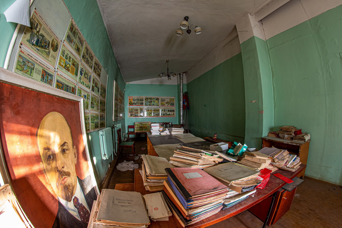 В остальных комнатах — сломанная мебель, хлам. Ну, и стопки документов, книг — явно архив вывезли не полностью. Атмосферно? Конечно. Ведь эти стены столько всего помнят.