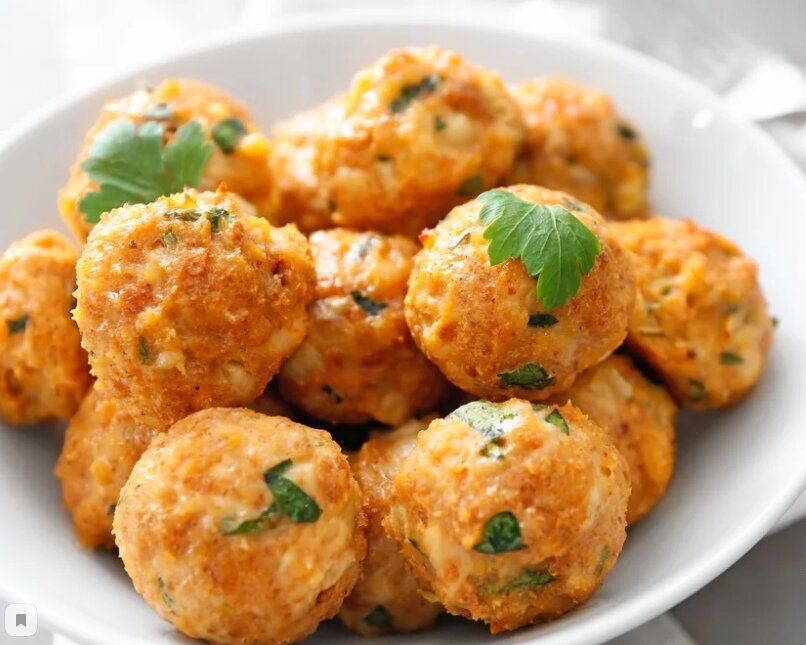 Тем, кто соблюдает не очень строгую мясную диету, рекомендуется приготовить по испанскому рецепту сочные куриные шарики с капустой и сыром. Закусочные шарики из куриного мяса с капустой и сыром можно подавать в теплом виде с огуречным салатом, маринованными грибами или каким-нибудь гарниром. Ингредиенты: - острый сыр Пекорино (180 г); - белокочанная капуста (250 г); - соль морская (по вкусу); - фарш куриный (580 г); - молотые сухари пшеничные (80 г); - сырое яйцо куриное (две штуки); - небольшой зубчик чеснока (одна штука); - крупномолотый перец черный (7 г); - фиолетовый лук салатный (130 г); - моцарелла (170 г); - сырокопченый бекон (260 г); - сушеный базилик измельченный (7 г). - приправа для курицы (8 г); - петрушка свежая для посыпки (по вкусу). Процесс приготовления: Не слишком крупно нашинковать промытую капусту и переложить в миску, слегка взбить, добавить сушеный базилик и куриный фарш, по вкусу насыпать соль и хорошо перемешать ингредиенты. Почистить и мелко натереть чеснок,