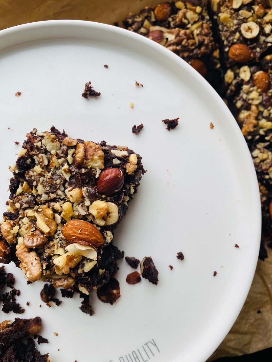 Делюсь с вами рецептом очень-очень шоколадного,влажного,сочного брауни из книги «Согревающая выпечка»(скандинавская кухня).Без преувеличения(опробовав немалое количество рецептов брауни)хочу сказать что это лучший из лучших вариантов👌 🌿Брауни локи: -200 гр качественного шоколада(70% какао;я брала 100 гр 70% и 100 гр молочного Callebaut); -250 гр сливочного масла 82,5%; -275 гр сахара; -3 яйца категории С0(или 175 гр); -75 гр пшеничной муки; -50 гр качественного какао(у меня -щепотка соли; -1 чайная ложка ванильного сахара или ванильного экстракта(у меня 1/3 ч.л сиропа с натуральной мадагаскарской ванилью); -150 гр начинки по вашему вкусу(у меня изюм,пекан,миндаль и термостабильные шоколадные капли). 🌿Приготовление: Все ингредиенты должны быть комнатной температуры.Растопить шоколад и сливочное масло на водяной бане(поверх кастрюли с кипящей водой,не давая дну миски касаться воды).Остудить до теплого состояния. Перемешать венчиком в большой миске сахар с яйцами,стараясь не слишком