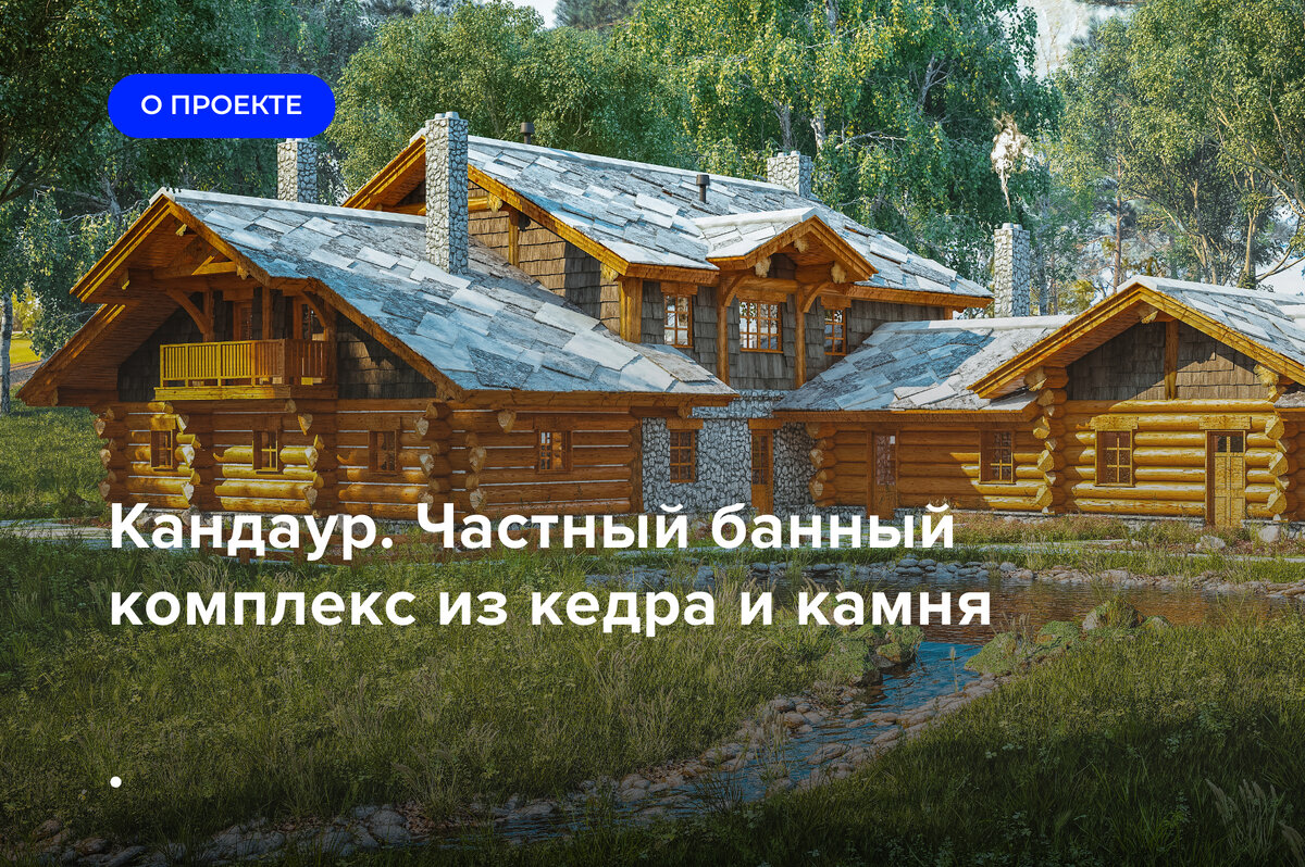 Проект частного банного комплекса «Кандауровские бани» - это любимое сочетание фактур камня и дерева, 380 квадратных метров и несколько недель кропотливой работы.
