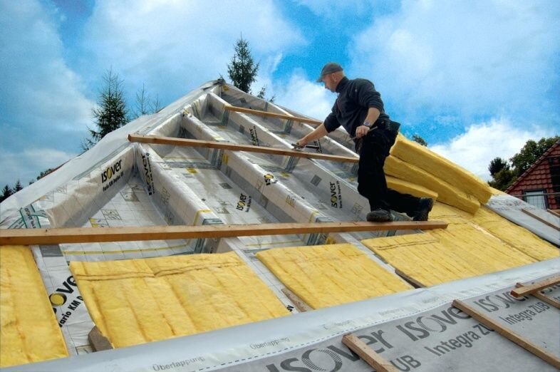 Независимо от того, какой материал вы выбрали для кровли - битумную черепицу, профнастил, шифер или рубероид - от его состояния будет зависеть уровень влажности в коттедже. Утепление кровли - обязательный этап. Это делается по разным причинам: минимизация затрат на отопление; предотвращение чрезмерного увлажнения; более надежная защита от негативного воздействия климатических условий и осадков. Кроме того, при устройстве мансардного этажа крайне понадобится утеплитель. Важный момент - выбор теплоизоляции. На данный момент в продаже много разных видов: пенопласт, экструдированный пенопласт, минеральная вата, пенополистирол, пенополиуретан и многие другие. Если вы собираетесь утеплять крышу под чердаком, пенопласт вряд ли подойдет, так как в основном его используют для нежилых помещений или внешнего утепления. По мнению специалистов, лучший утеплитель - минеральная вата. Он имеет ряд преимуществ: изготовлен из натурального материала - базальта; при производстве не используются химические