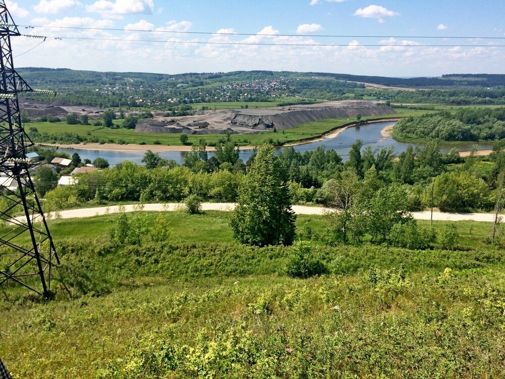 У карьера Белый камень на горе стоит безымянная часовня. Едем к ней. Сворачиваем на ул. Революционная в сторону горнолыжного курорта Такман. Двухэтажные деревянные дома, постройки 1915-1920 годов привлекают своей статностью и опрятностью. Для такого почтенного возраста они выглядят превосходно. Проезжаем насквозь этот микрорайон под названием Дальний восток. Купол безымянной часовни виден издали. Еле приметная тропинка прямо с дороги круто поднимается вверх. Поднялись с передышками. За труды наши мы были награждены двумя ягодами спелой земляники. Вид отсюда великолепный. Частный сектор вдоль реки, слияние Усьвы и Вильвы, за рекой отвалы ЧМЗ, за отвалами микрорайон с нежным названием Лисьи Гнезда и городище, относящееся к родановской культуре с одноименным названием, недавно открытая автодорога в обход Чусового и между деревьев можно разглядеть сам карьер. О часовне интернет пишет, что строили ее рабочие Горного цеха, в конце первого десятилетия этого века. Хотели освятить, но батюшка отказался, сказав, что крест не правильно поставили - не туда смотрит. Теперь так и стоит.