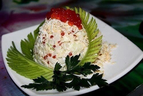 Этот салат носит громкое и величественное название неспроста, ведь в его состав входят такие продукты, как икра и кальмары
