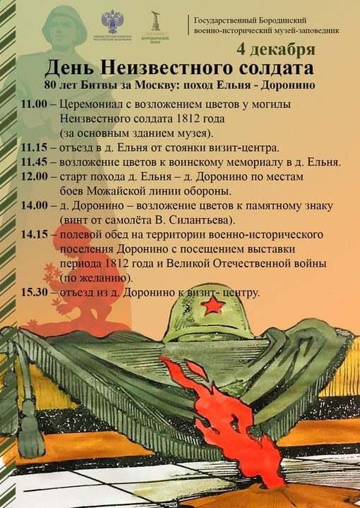 Приуроченный к Дню Неизвестного солдата, отмечаемому в России 3 декабря, поход начнется с возложения цветов к могиле Неизвестного солдата в центре Бородинского поля и объединит представителей нескольких поколений, ведь память о великом подвиге народа – не пустой звук, а священный долг потомков героев Родины.