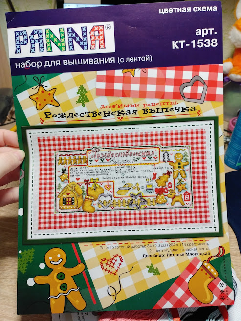 Всем привет, я рада видеть вас на канале Лисинкина кладовочка :) Новый год к нам уже тихо подкрадывается и я, совершенно случайно, обзавелась одним интересным набором от фирмы Panna. Случайно, потому что мы заходили в Леонардо за пластиковой канвой... А вышли с четырьмя наборами. И без канвы. У кого-нибудь ещё такое было? Если да, то ставьте лапки в комментариях. 🐾 Про два набора из этой покупки я уже рассказывала здесь: Осталось рассказать про ещё два. Поэтому давайте откроем их прямо сейчас. Первый набор - "Любимые рецепты. Рождественская выпечка" от Панны Набор был с приличной скидкой - 370 рублей вместо 679. В набор входит 21 цвет мулине, включая два металлика. И красная атласная ленточка. Ей оформлляется декоративный бантик. Посмотрите какие огромные пачки первых четырёх цветов: Сразу понятно какие оттенки преобладают в вышивке. И это неудивительно, там вышивается рамочка из клеточек трёх цветов. И чёрным оформляется весь бэк, которого тоже очень много. Лентой формируется декорат