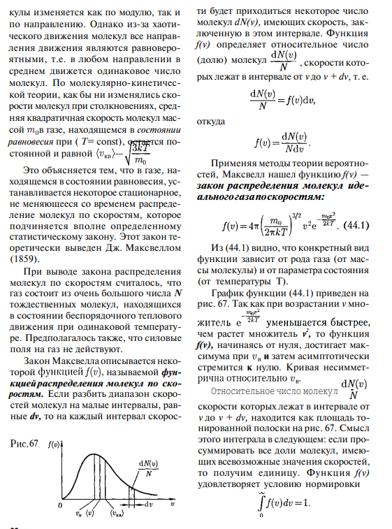 Закон Максвелла о распределении молекулидеального газа по скоростям и энергиям теплового движения