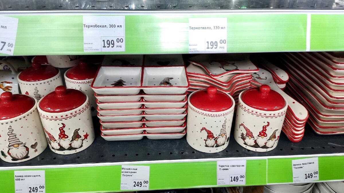 - На этой неделе прошлась между рядами и сразу бросились в глаза новогодние товары. Они занимают сейчас очень много места, все сразу не рассмотришь.