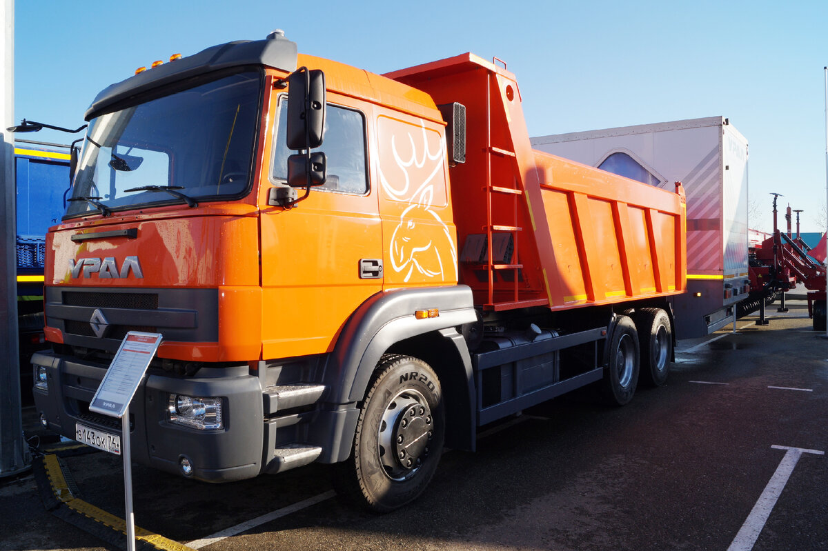 Знакомьтесь! Перед вами опытный образец самосвала Урал-С34520, который рассмотрел на международной выставке ЮГАГРО 2021. Массовое производство данного грузовика планируется в следующем году. На вопрос, будет ли завод отказываться от кабин с капотной компоновкой в пользу бескапотных, получил ответ, что не планируется. Для чего же тогда нужны все эти инновации? Всё просто! Расширить модельный ряд. Ведь бескапотные грузовики обладают отличной маневренностью, особенно короткобазные! К примеру, в городском потоке. Автомобильный завод "УРАЛ" расположен в городе Миасс, что находится в Челябинской области. Там производят гражданские и военные машины. Да-да, автомобили "Урал" в различных исполнениях стоят на вооружении РФ. Так что техника надёжная! Нет это не реклама, мне есть за что её поругать. Кабина опрокидывается вперёд, чтобы рассмотреть силовой агрегат поднимать её не стали. Я вам так скажу. Урал-С34520 оборудован дизельным, L-6 двигателем (ЯМЗ) объемом 6,7 литра, мощностью 328 л.с Ко