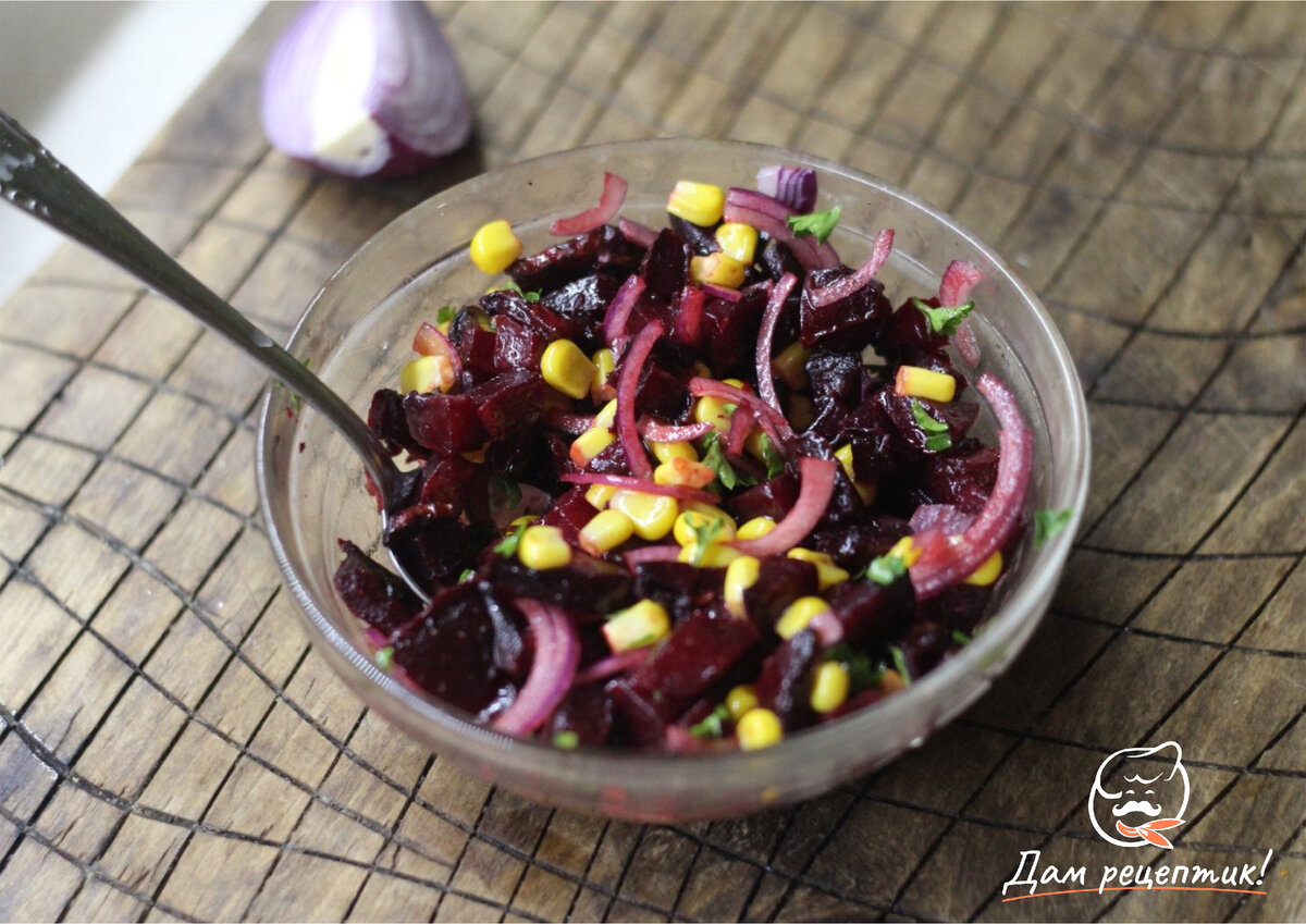 Осенний салат со свеклой, луком и кукурузой станет вкусным дополнением к любому ужину. Он легкий, очень вкусный и полезный. Для приготовления закуски не потребуется майонез и другие калорийные продукты – только овощи и корнеплоды! Свекольный салат точно станет яркой изюминкой на вашем праздничном столе! Энергетическая ценность на порцию Сложность рецепта: Ингредиенты: Из расчета на 1 порцию (200 г) Рецепт приготовления: Шаг 1 Для начала нужно измельчить кубиком печеную свеклу, нарезать полукольцами красную луковицу. Шаг 2 Добавить измельченную зелень и кукурузу. Шаг 3 Заправить закуску смесью из масла и лимонного сока. Приправить салат по вкусу. Шаг 4 Витаминный осенний салат готов! Приятного аппетита! *********************************************************** Подписывайтесь на наш канал! С нами готовить просто и быстро! Мы пошагово расскажем вам, как правильно и вкусно приготовить любимую домашнюю еду из самых простых ингредиентов - холодные закуски и салаты, блюда из рыбы и мяса, де