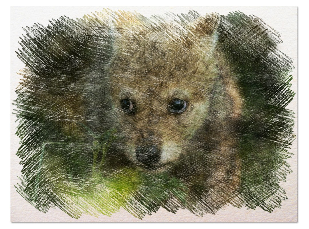Однажды, летним тёплым днём, пошёл дед Митяй в лес. Вдруг, видит под кустом у самой тропинки, свернувшись клубочком, лежит волчонок, не больше щенка. Когда Митяй подошёл к нему, малыш и не думал убегать. Он был такой худой - одна кожа да кости. «Что это с ним стряслось? Почему он не убегает?» - подумал дед Митяй. Когда подошёл уже совсем близко, волчонок дёрнулся, попробовал убежать, да не смог. Оказалось, у него сломана лапа. Жаль стало волчонка деду. Калеку мать бросила. Поймал он щенка, сунул в мешок и понёс домой. Дома осмотрел волчонку лапу, так и есть - перелом кости. Кто знает, как это случилось. Перевязал дед лапу, чтобы кость срослась. Щенок скулит. Видно ему очень больно, но он терпел, словно понимал, что дед Митя ему добра желает. Потом устроил ему место за дверью и накормил. Недельки через четыре лапа волчонка срослась. Малыш подрос, раздобрев от хорошей пищи. Дед Митяй выходил волчонка. Стал гладкошёрстный, крепкий, но след всё же остался на передней лапе - слегка прихрам
