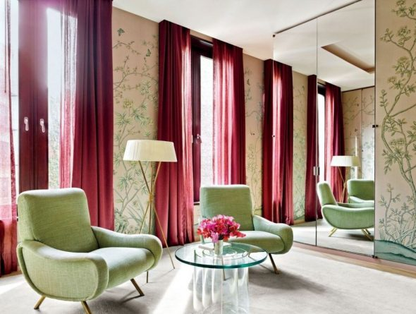Сильное сочетание – бордовый с насыщенным зеленым, очень эффектная комбинация, но приедается быстрее, чем многие контрасты.