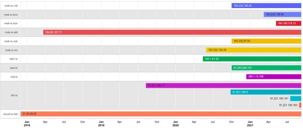 Под самый конец необычно знойного июля этого года, на Сибирском аиксе была поднята четвертая по счету BGP-сессия с AS199524. Первые анонсы CDN-сети G-Core, которую собственно представляет AS199524, появились на точке обмена SFO-IX двумя годами ранее, в 2019. Впрочем, действительно жаркое время выдалось для G-Core, начиная с марта прошлого года. В дополнение к узлам в Москве, Питере и Екатеринбурге, эта CDN-сеть широко шагнула в регионы и расширила свое внимание к различным пиринговым площадкам. Красноярск, Владивосток, Ростов, Краснодар, Новосибирск, Самара, Казань – все эти новые географические локации были открыты уже во время карантина. Теперь CDN-сеть G-Core, из контентных сервисов или сетей его доставки до конечных пользователей, по присутствию на российских аиксах уступает только ivi.ru. Известный сервис онлайн-видео анонсы своей AS57629 объявляет на 23 роут-серверах, а G-Core на 19. Для примера, ru.map-ix.net обсчитывает на сегодня Looking Glass 35 роут-серверов. Rак видно, куда