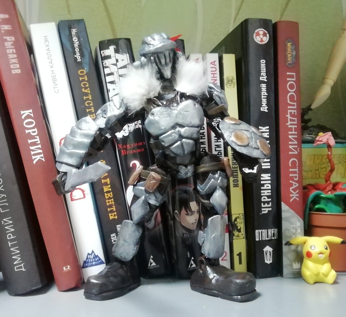 Данный персонаж одноименного аниме и манги, в которой он справлялся с гоблинами, за что его и прозвали убийцей гоблинов Скелет взят из сборной китайской игрушки, что позволяет ставить фигурку в различные позы. Детали брони,шлема,меча и щита слеплены из полимерной глины Загрунтована после чего покрашена акриловыми красками фигурка была полностью готова. Процесс создания занял около 9-12 часов