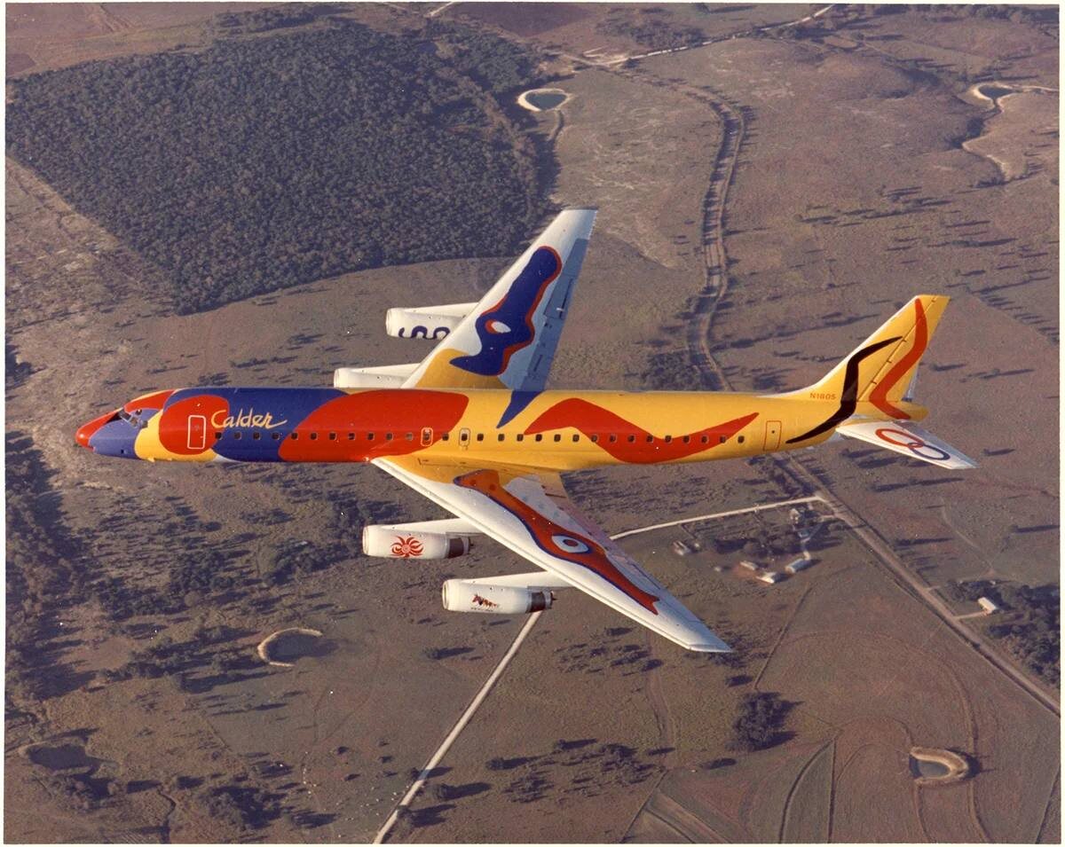 В 1970-х авиакомпания Braniff International наняла художника Александра Колдера, чтобы раскрасить ливрею своих самолетов. Из этого получился один из самых крутых креативных проектов в мире авиации. В тот год отмечали 200 лет со дня Независимости США, у всех было праздничное настроение. Цвета должны были соответствовать слогану авиакомпании: «Flying colors of United States». Для главного самолёта Колдер использовал традиционные цвета американского флага Old Glory. Борт оказался таким же характерным, как и художник. Пилоты дали ему прозвище «Подлая Змея». У самолёта была техническая проблема, из-за которой пилотам приходилось управлять им вручную, без автопилота. Жизнь этого самолёта закончилась так же эффектно, как и вся его история. В 1993 году самолёт использовался в фильме «Плохие парни»: он был уничтожен во время взрыва в финальной сцене.