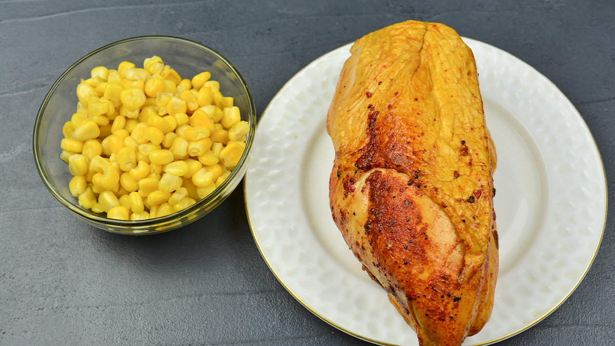 Легкий, но сытный, свежий, а еще и очень вкусный – все это в точности описывает салат, рецептом которого я хочу поделиться с вами прямо сейчас. Мне кажется, что в его состав входят идеально подобранные компоненты, которые гармонично сочетаются друг с другом. И еще один момент – смотрится салат даже среди других блюд на столе очень аппетитно и точно не останется без внимания! Для его приготовления не нужно ничего отваривать. Единственная важная задача – купить вкусную копченую курицу. Если любите мясо посочнее - используйте куриные бедрышки. Я, чаще всего, покупаю копченую грудку специально для этого салата. Процесс приготовления: 1. Нарезать ножом на мелкие кубики копченую курицу. За счет того, что в салат входит копченая курица, он получается очень вкусным, нежным, имеет приятный аромат. Вам нравится копченое мясо? Жду ваши ответы в комментариях под статьей! 2. Нарезать ножом на мелкие кубики свежий помидор. 3. Слить из банки консервированной кукурузы рассол и добавить только зернышки