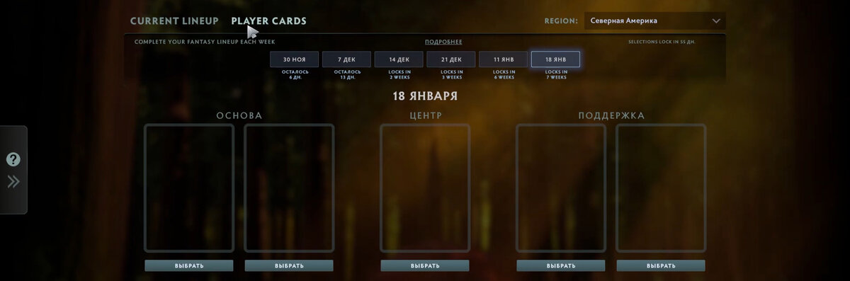 В ночь с 23 на 24 ноября 202й Valve выпустили обновление в DOTA 2, приуроченное к началу DPC-сезона. Конкретно добавили фэнтези-лиги по регионам. То есть, теперь нужно составлять свою команду из лучших по вашему мнению игроков в каждом регионе и делать это еженедельно, а не каждый день, как это было во время The International 10. Каждому дали по 10 наборов карточек стартовых, но будьте аккуратнее, 10 наборов на все регионы, а не для каждого! Поэтому нужно внимательно следить набор какого региона вы открываете. Дополнительные наборы карточек можно будет получить за первую победу в день и за покупку командных бандлов, которые добавят позже. В фэнтези-лиге будут участвовать только первые дивизионы. Составлять составы можно сразу на нескольких регионах, но в зачёт пойдёт только лучший состав ваш за неделю, а не суммироваться все регионы разом. За попадание вашей лучшей команды, в зависимости от очков вы будете получать уровни фэнтези: 10% лучших по итогам недели получат 3 уровня; 25% луч
