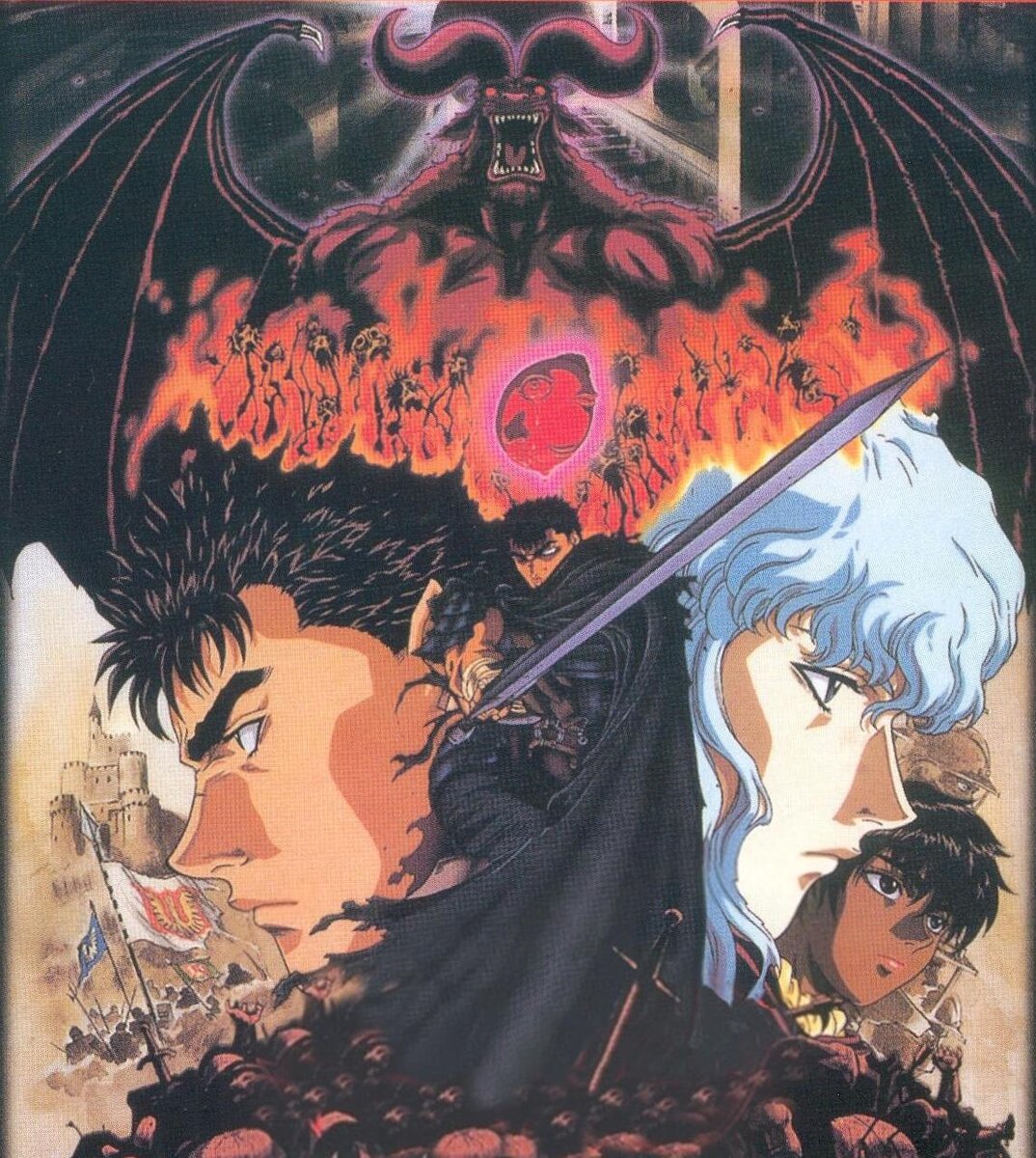 Всем привет от AnimeFans Сегодня вашему вниманию предлагается замечательная картина. БЕРСЕРК Год выпуска: 1997 Студия: OLM Автор: Кэнтаро Миура Немного о сюжете и куда он нас приведет. Наш герой по имени Гутс воин одиночка с наемных кругов, который живёт ради сражений. Поражение от лидера группы Гриффита, Гутс вступает в группу наемников под названием Бандой Ястреба и быстро поднимается в роли лучшего воина. В один момент Гриффит показывает свою реликвию и говоря о мечте править в с собственном королевстве. Киш сталкиваются с Зоддом Бессмертный, который чуть не убивая его и Гриффита, мечта дает жизнь и силы если умрет он умрет и мечта. После ожесточенного боя, выздоравливая Гриффит заводит отношения с дочерью короля Мидлера. Выздоравливая, Гриффит начинает сближаться с дочерью короля Мидленда Шарлоттой. Банда Ястреб нанимается королевством помогая выиграть долголетнюю войну против Тюдоров. Гутс твердо взялся за развитие тесных отношений с Каской, единственной девушкой из членов г