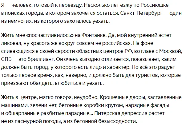 Питер только для туризма, но никак для ПМЖ. Объясняю причины