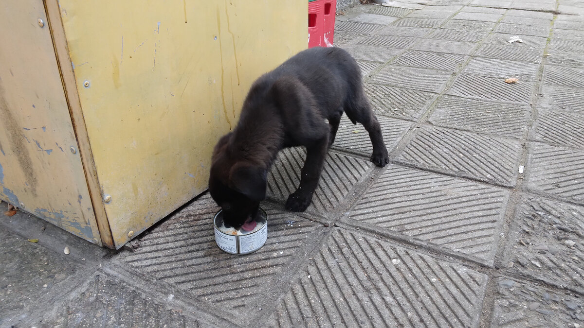 Этот щенок появился на центральной площади села возле магазинов где-то дней десять назад. Сначала я подумала, что это Люське, здешней уличной псине, живущей в подвале пустующей школы, удалось сохранить одного из своих щенков. Кроме Люськи в этом подвале живёт ещё кобель, гончак- лудогорец, которого в селе зовут Ням-ням. Люську и Ням-няма добрые люди кормят и Люська ходит хронически беременная. Куда деваются щенки- никто не знает, Люська их тщательно прячет. По экстерьеру и масти щенок оказался очень похож на Ням-няма. Но нет, Люська родила совсем недавно, а щенку уже месяца полтора- два. Видимо, привезли откуда-то и выбросили в селе. Обычная история. В любом случае щенка с улицы надо было убирать. Конечно, его подкармливали и никто не обижал, но впереди зима и шансы на выживание в холоде у него крайне невелики. Это не считая того, что по площади постоянно гоняют машины, щенок может запросто попасть под колёса. Одна из здешних болгарок выложила объявление о пристройстве щенка в закрыт