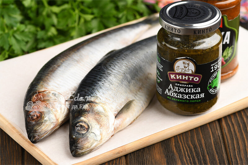 Очень простой и интересный способ приготовления вкусной селедки на закуску. Потребуется минимум продуктов. Основной вкус и аромат рыбе будет давать аджика, которую можно брать красную или зеленую. Селедка получается малосольная, очень ароматная и вкусная. Ее можно подавать просто на тарелке или готовить с ней бутерброды. Она отлично подходит для праздничного стола. Порции 4 Время подготовки 30 минут Время приготовления 6-7 часов Ингредиенты Инструкции 1. Замороженную селедку заранее размораживаем. Удаляем кожу, внутренности, голову, по центральной кости делим на 2 половинки и убираем кости. Готовое филе нарезаем на кусочки и выкладываем в миску. 2. Для приготовления подходит разная аджика. Можно использовать аджику из красного или зеленого перца. Я буду использовать зеленую аджику. 3. Аджику пробуем на соль. Если она очень соленая, то соли больше не потребуется. Кусочки подготовленной селедки поливаем лимонным соком и добавляем аджику (2 ч.л. с большими горками). 4. Репчатый лук можно