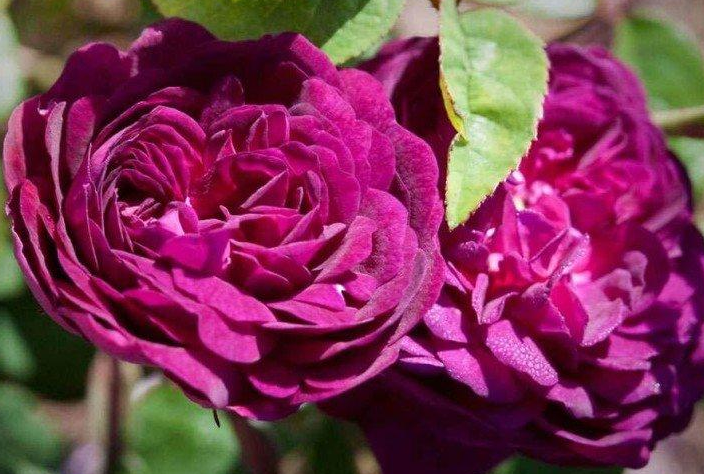 Красивая французская роза ценится за двухсторонний окрас лепестков – пурпурный и розовый. За счет этого крупные цветки до 10 см